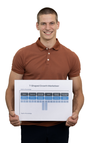 T-Shaped Growth Marketeers noemen ze dat. Professionals met brede kennis én eigen specialismen. Van strategie en campagnes tot content, data en design. We hebben alles in huis.